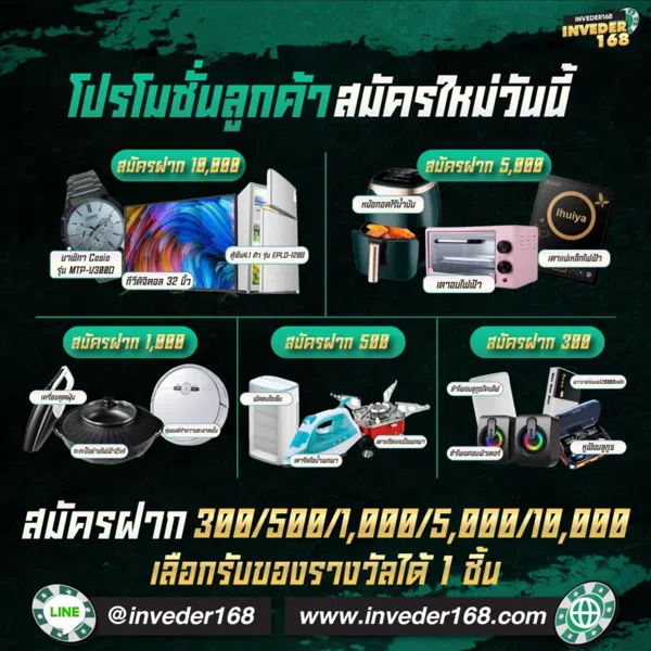 ด้วยโปรโมชั่นและสิทธิพิเศษมากมายเหล่านี้ ทำให้ inveder168 เป็นมากกว่าเว็บพนันทั่วไป แต่เป็นประสบการณ์การเดิมพันที่คุ้มค่าและน่าประทับใจ สมาชิกทุกคนจะรู้สึกได้ถึงการเป็นส่วนหนึ่งของครอบครัว inveder168 ที่ได้รับการดูแลเป็นอย่างดี พร้อมโอกาสในการสร้างผลกำไรที่มากขึ้นจากสิทธิประโยชน์ต่างๆ ที่เราตั้งใจมอบให้