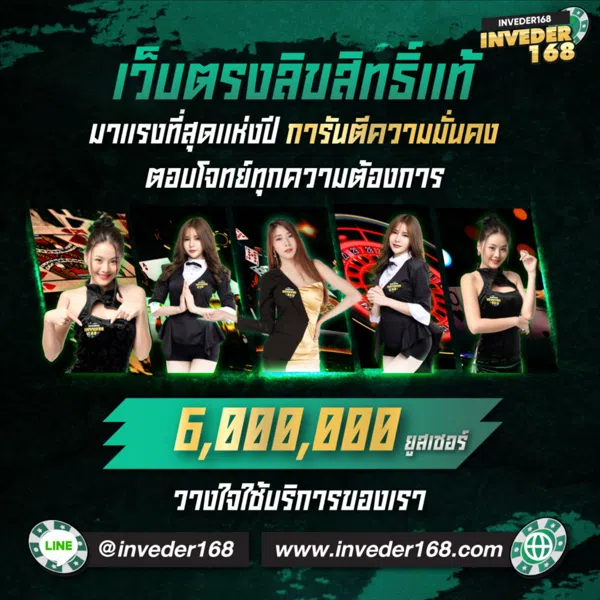 ด้วยประสบการณ์การให้บริการมายาวนาน ทำให้ inveder168 ได้รับความไว้วางใจจากนักพนันทั่วประเทศ การันตีด้วยระบบที่มั่นคง ปลอดภัย เชื่อถือได้ และทีมงานคุณภาพที่พร้อมดูแลตลอด 24 ชม.